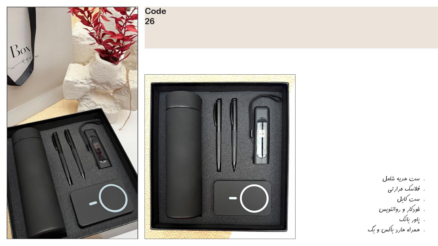 فلاسک حرارتی، ست کابل، خودکار و رواننویس، پاوربانک، همراه هارد باکس و بگ