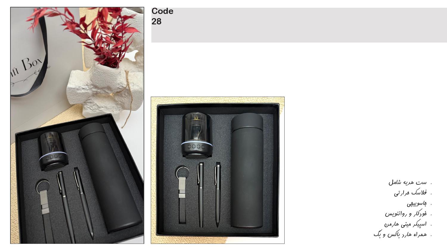 فلاسک حرارتی، جاسوئیچی، خودکار و رواننویس، اسپیکر مینی هارمن، همراه هارد باکس و بگ