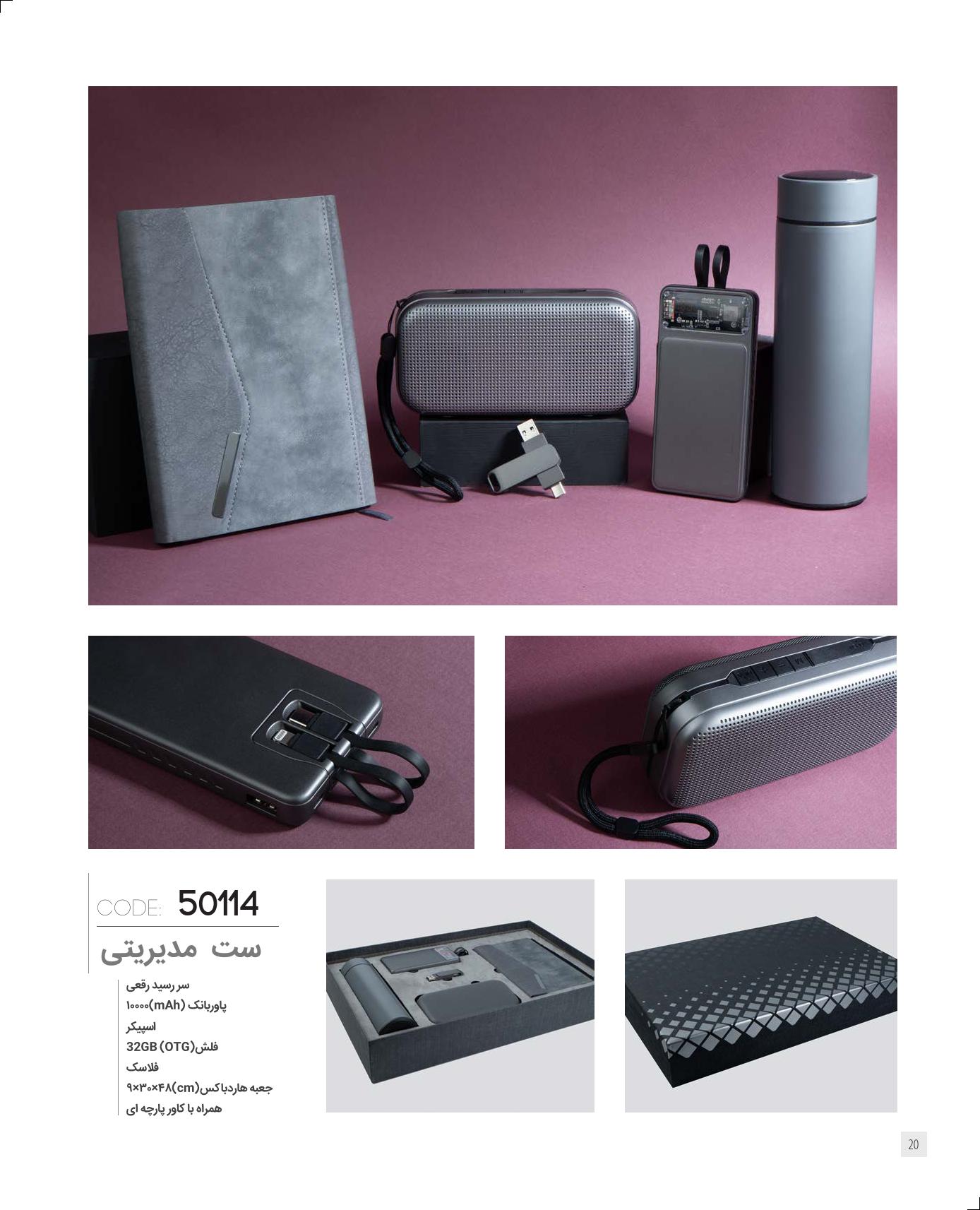 سررسید رقعی، پاوربانک mAh10000، اسپیکر، فلش 32GB (OTG)، فلاسک، به همراه کاور پارچهای