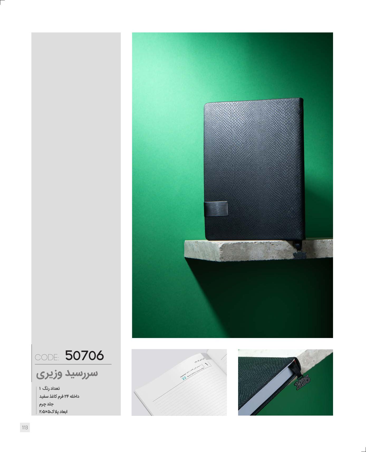 داخل24فرم، کاغذ کرم سفید، جلد چرم، دارای پلاک 1405 به ابعاد 2.5*5