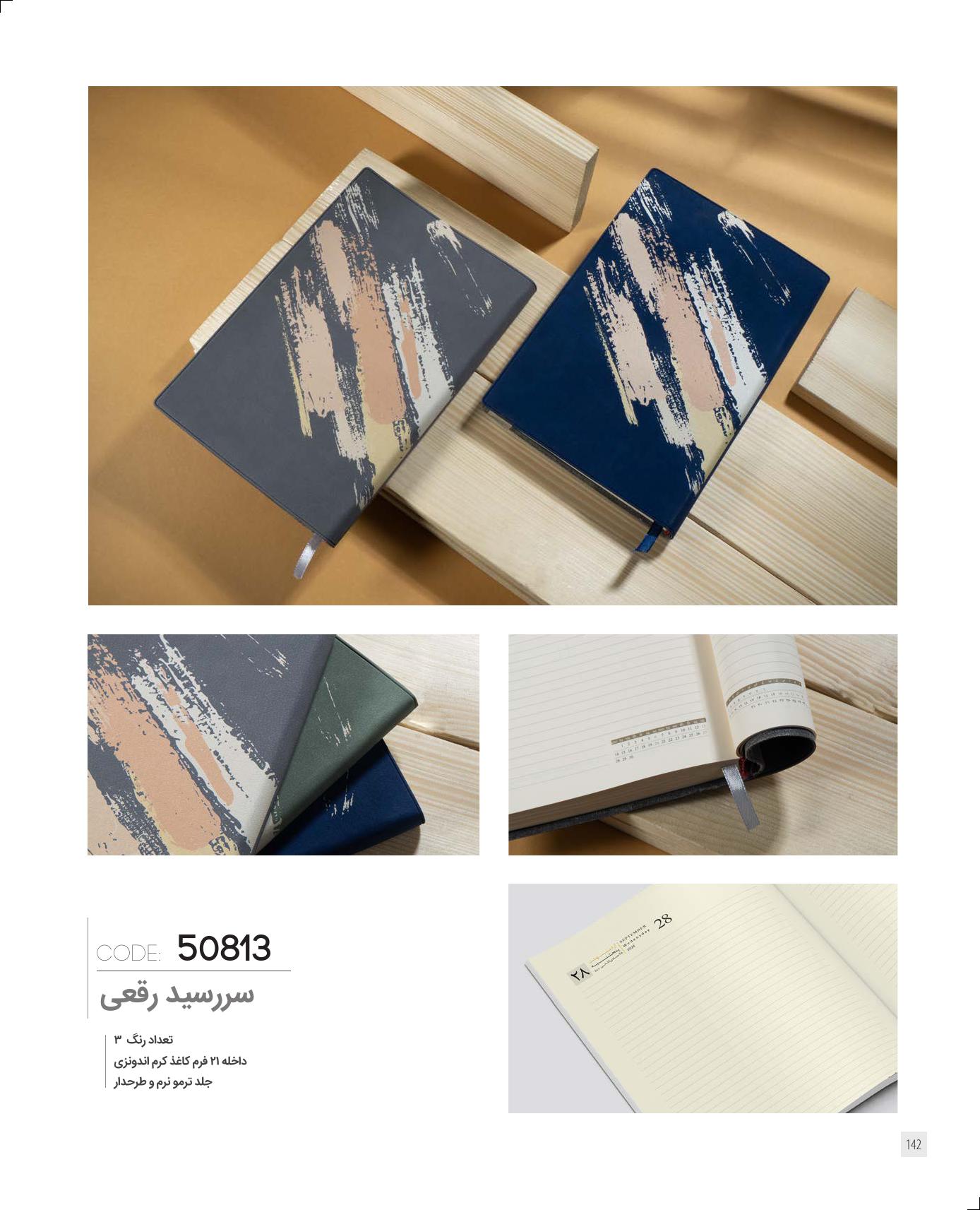 داخل24فرم، کاغذ کرم اندونزی، جلد چرم، لب طلا، دارای پلاک 2*4